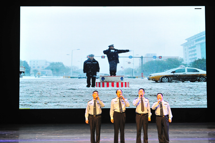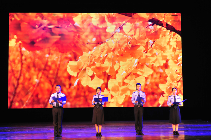 8月中旬,市局政治部宣传科到各单位对节目进行初选,从中选出了7件作品,包括舞蹈、小品、歌曲连唱、歌伴舞和配乐诗朗诵等。为确保录制效果,宣传科与鹤壁市广播电视台结合,在全市最好的舞台---市文化艺术中心录制节目,并且由电视台专业人员负责录制及后期制作。8月25日,市局宣传科组织浚县、淇县、淇滨、山城、鹤山、特殊警务支队和交通管理支队的相关演员,汇聚市文化艺术中心,以饱满的热情,奉上了一台精彩纷呈的文艺盛宴,圆满完成了参赛作品的录制工作。
